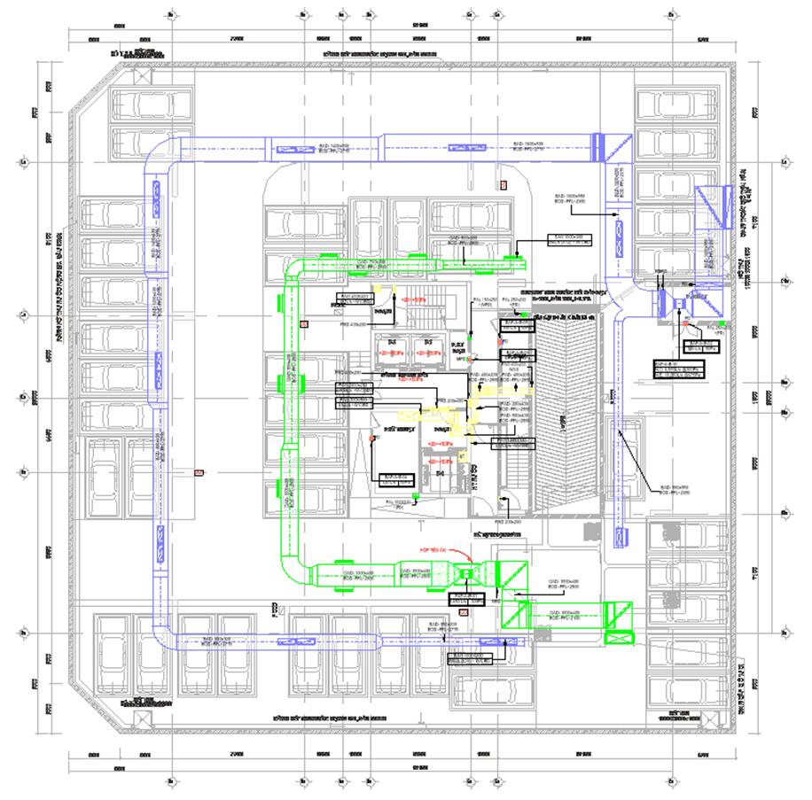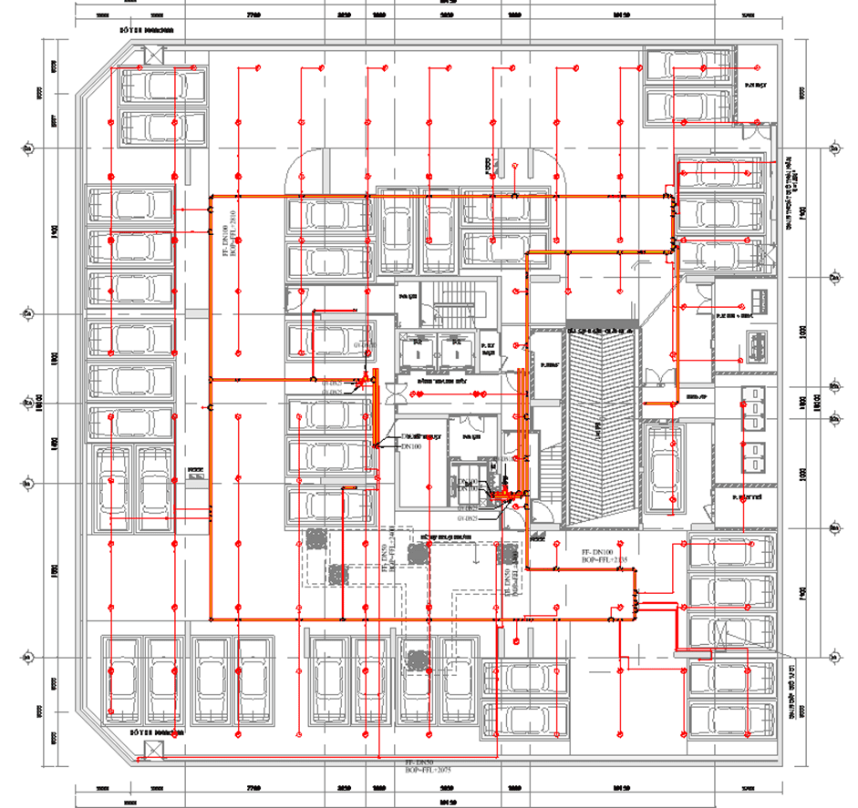 Mặt bằng hệ thống cấp thoát nước tầng hầm