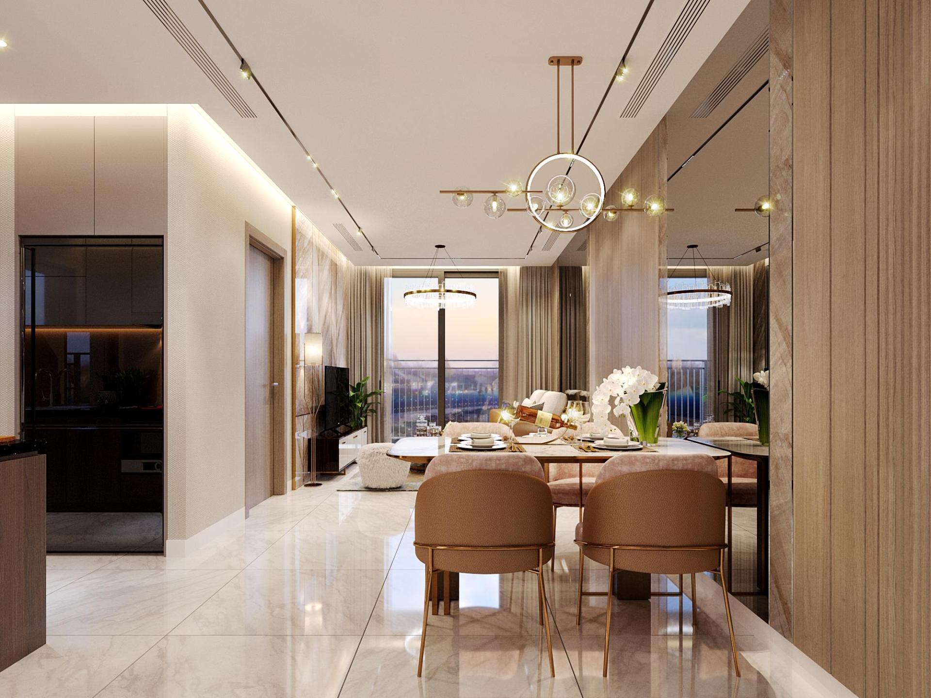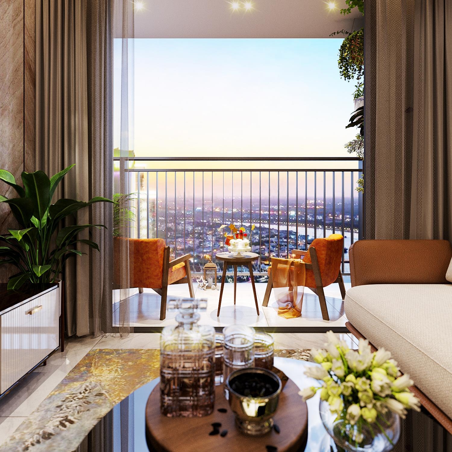 Từ phòng khách mở ra ban công ngập nắng, phòng ngủ ấm áp với view sông Cần Thơ, đến khu bếp tinh gọn và phòng tắm hiện đại – tất cả hòa quyện trong bảng màu be – nâu – vàng champagne thanh lịch, mang lại cảm giác ấm cúng, sang trọng và an yên.