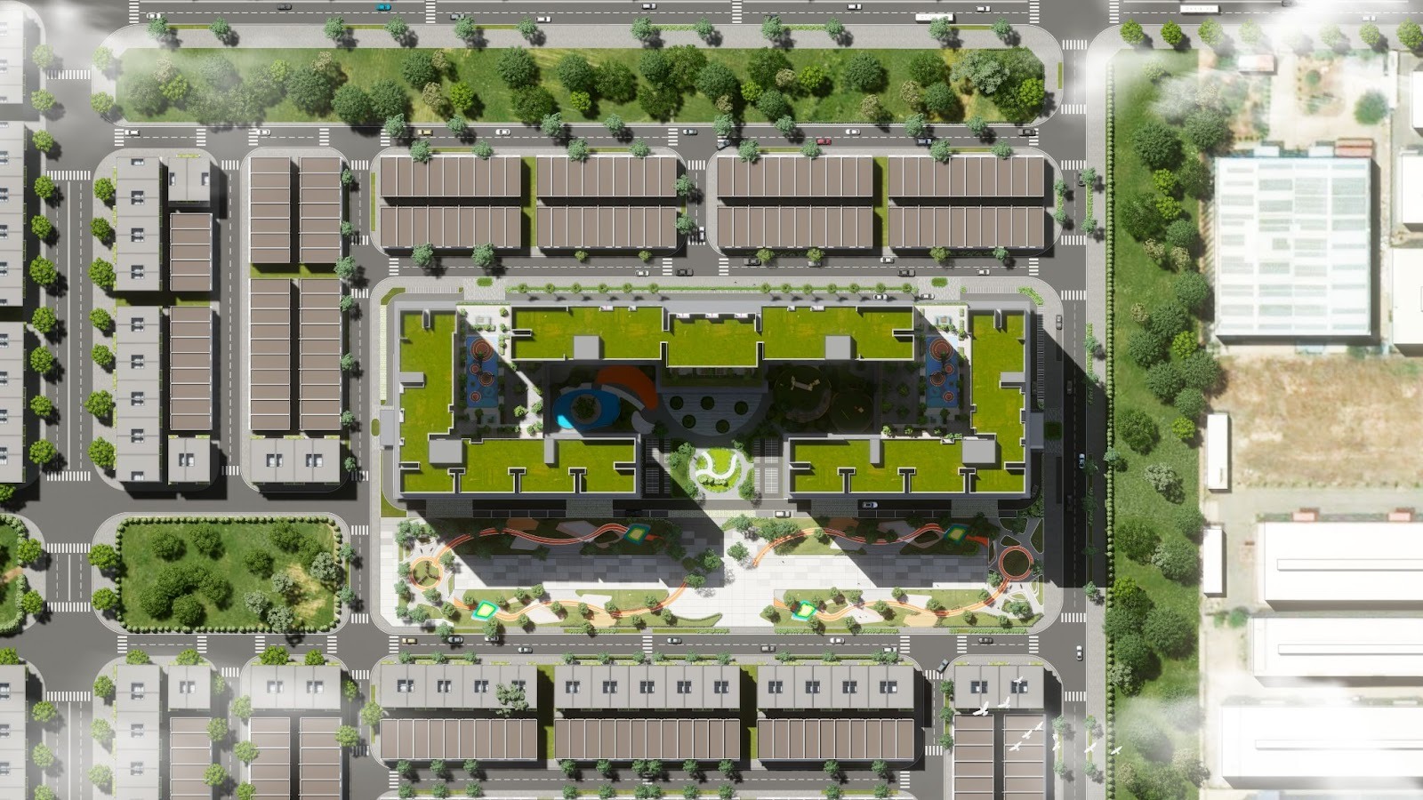 Phối cảnh dự án – không gian hài hòa giữa nhà ở, cảnh quan và tiện ích cộng đồng