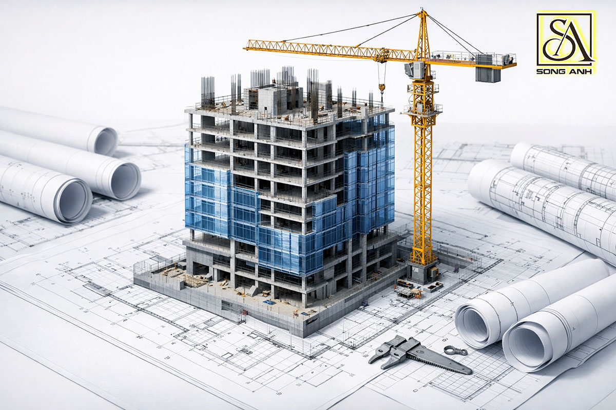 Tại Song Anh, kiến trúc, kết cấu và MEP không làm việc độc lập rồi mang ra đối chiếu ở giai đoạn cuối. Ba bộ môn triển khai song song trên cùng một hệ dữ liệu, từ giai đoạn thiết kế cơ sở cho đến khi hoàn thiện hồ sơ kỹ thuật.