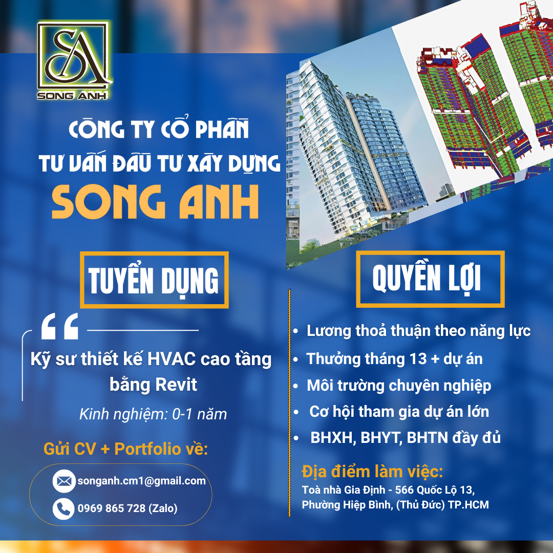 Thiết kế, triển khai bản vẽ hệ thống HVAC (điều hòa không khí, thông gió) cho công trình cao tầng.
